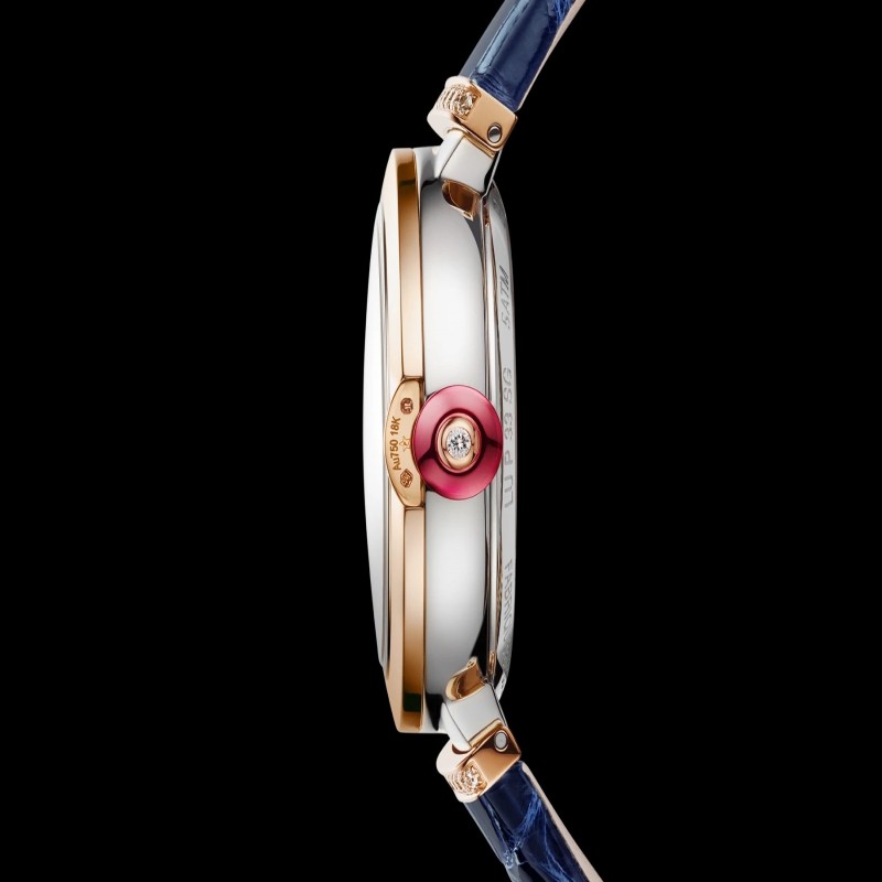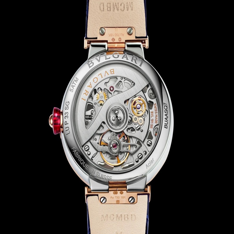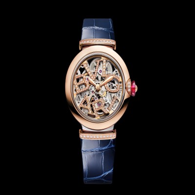 啟發時間,LVCEA 為每一天和每一種風格帶來魅力:它是一款真正為女性打造的手錶。LVCEA Skeleton 腕錶的靈感源自羅馬的永恆之美、線條流暢的對稱性和純潔性,將經典風格與現代外觀融為一體,同時其大膽而嚴謹的設計與鏤空錶盤的閃亮魅力相結合。這款鏤空腕錶以寶格麗 (Bvlgari) 無可挑剔的創意和珠寶商對色彩的熱愛精心打造,是歷史上第一款採用製表師徽標字母並將其融入設計的鏤空腕錶。LVCEA 鏤空腕錶,機械製造機芯,自動上鍊和鏤空,33 毫米不銹鋼錶殼,18 克拉玫瑰金表圈,18 克拉玫瑰金表冠,鑲嵌一顆粉紅色凸圓形切割寶石和鑽石,18 克拉玫瑰金鏤空 BVLGARI 標誌錶盤鑲嵌明亮式切割鑽石,藍色鱷魚皮錶帶,18 克拉玫瑰金鍊節鑲嵌鑽石。防水深度可達 30 米。