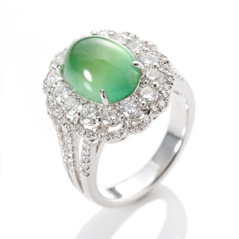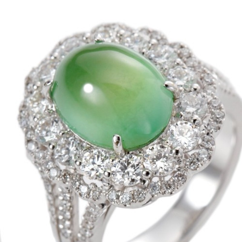 緬甸 頂級木拿玻璃種A貨翡翠 18K金鑽戒