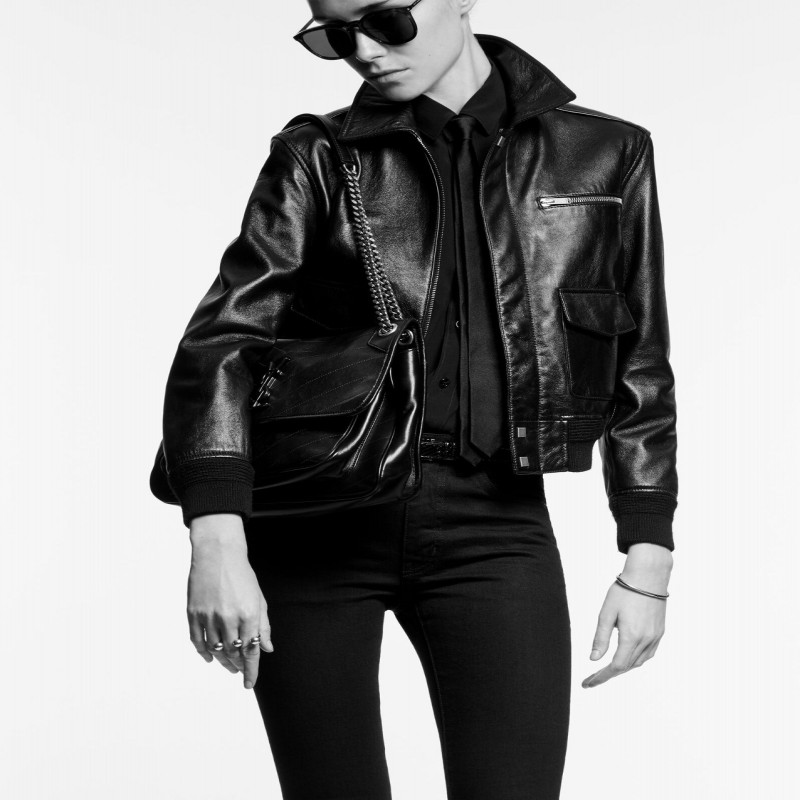 MONOGRAM SAINT LAURENT BAG WITH A FLAP, DECORATED WITH LEATHER-COVERED YSL INITIALS AND FEATURING A LEATHER-REINFORCED CHAIN STRAP THAT CAN BE WORN CROSS-BODY OR DOUBLED FOR SHOULDER CARRY.