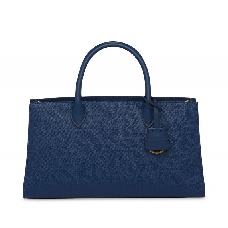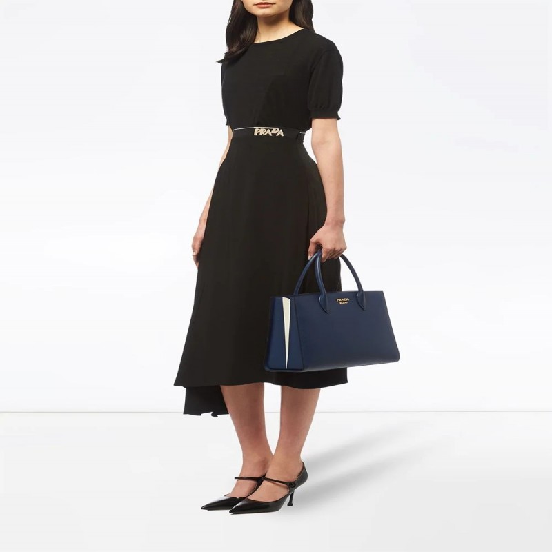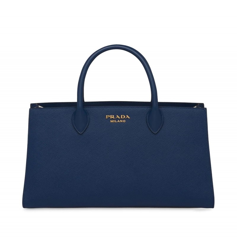 這款十字紋真皮大款托特包來自Prada。設計細節:頂部有弧狀手柄、正面標誌貼、內置拉鍊夾層、內置拉鍊口袋。