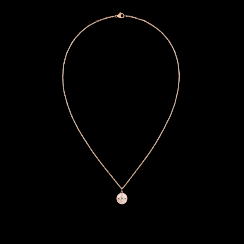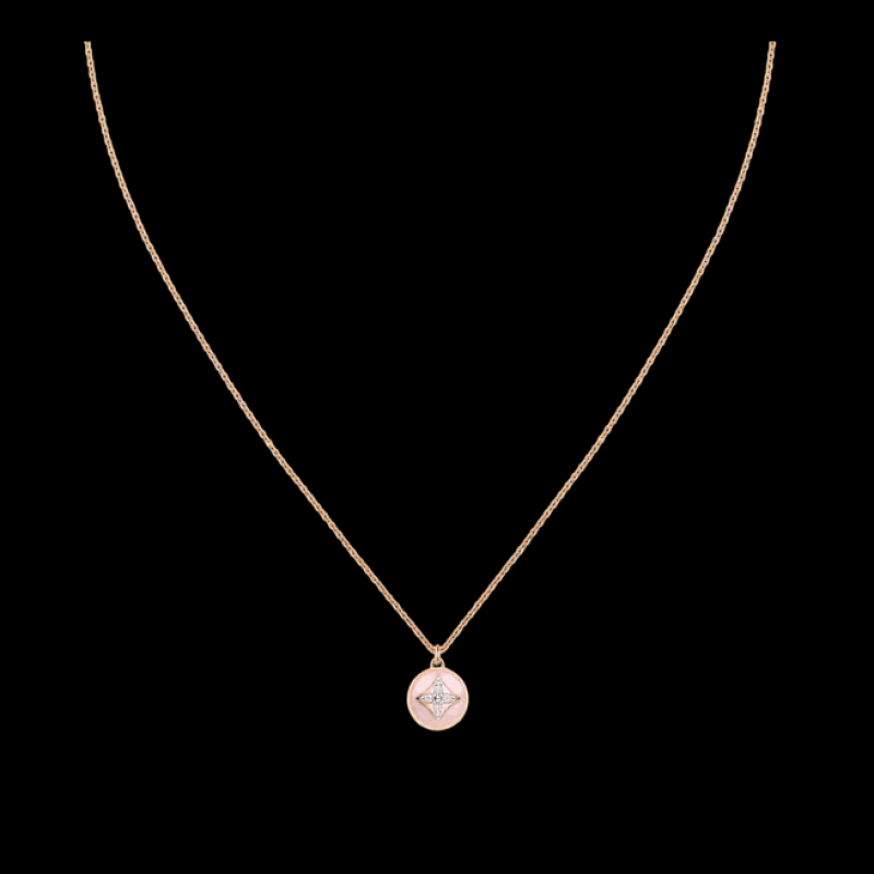 這款吊墜屬於B Blossom高級珠寶系列,向Monogram花卉圖案致敬。奢華的粉紅色蛋白石鑲嵌鑽石,並以密鑲鑽石圈環點綴,繫掛於18K玫瑰金鏈帶上,與寶石色彩互相輝映。設計鮮明奪目,可配搭其他珠寶首飾,締造迷人疊戴效果。