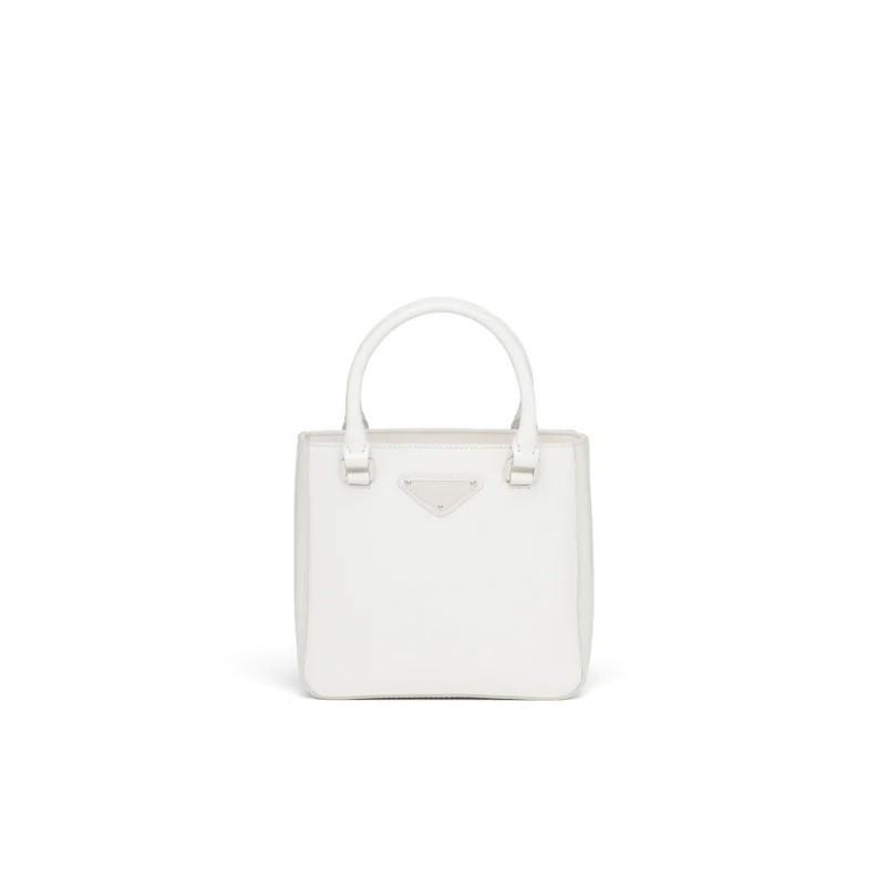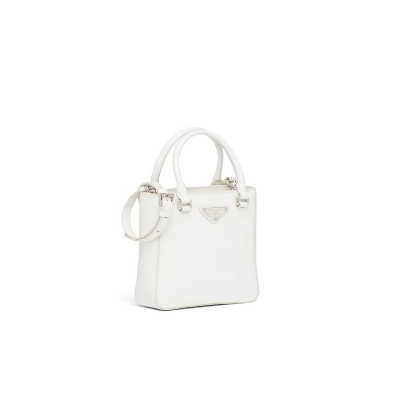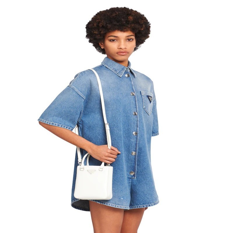 這款簡約的小號方形托特包採用亮面皮革打造。復古的亮面皮革為Prada的經典材質之一。可拆卸的皮革肩帶可變換多種攜帶方式。