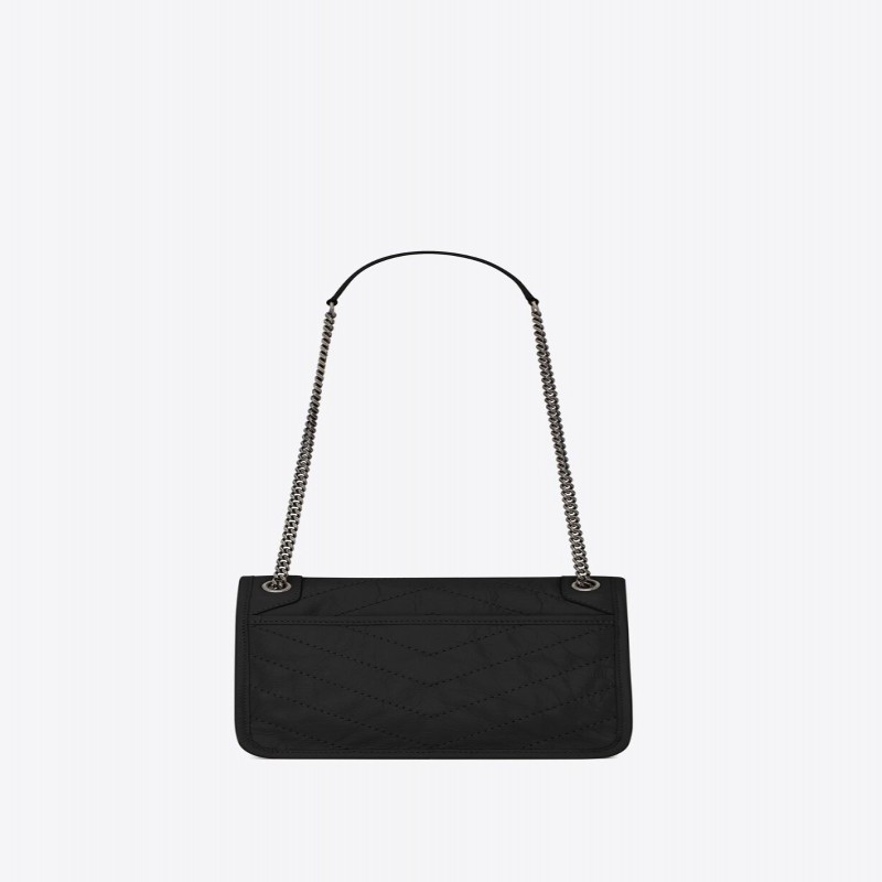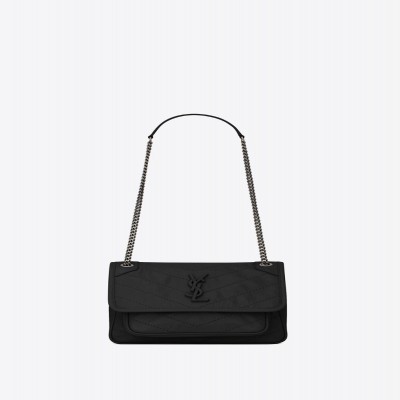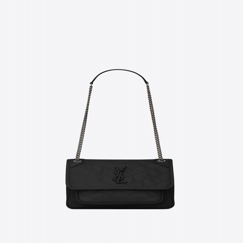 翻蓋包,飾以真皮包覆的YSL 標誌,配以可單肩斜跨兩用的真皮加固肩帶鏈。