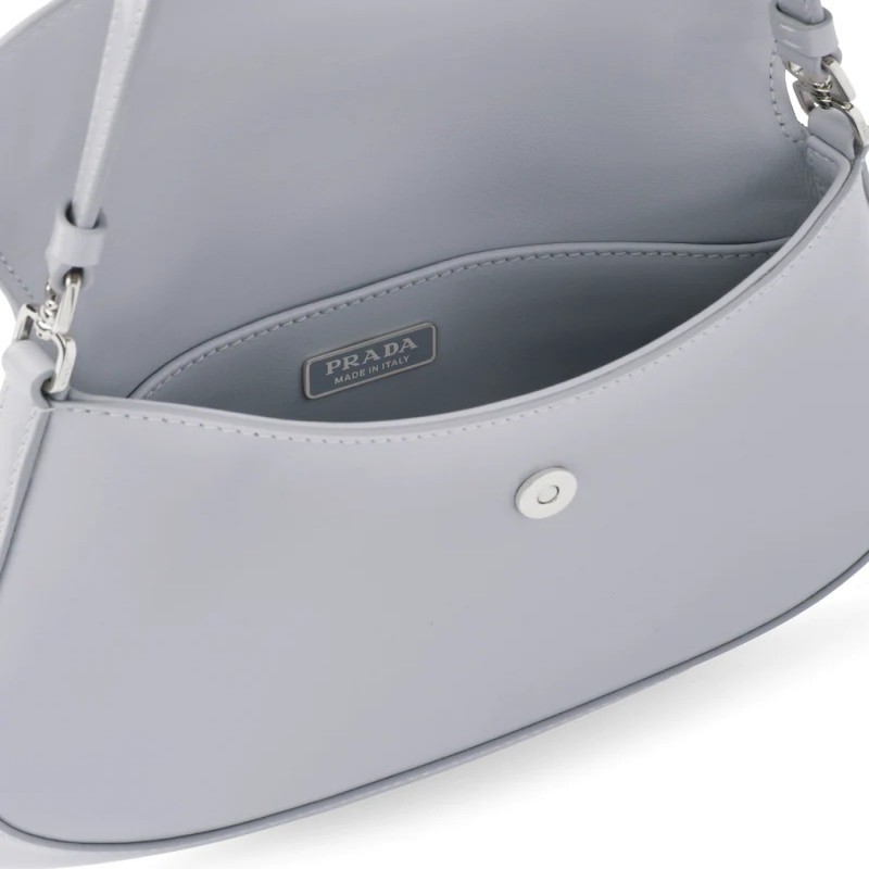這款Prada Cleo單肩包重釋1990年代品牌標誌性的設計,頗具精緻格調。單肩包結構別緻,底部和側面漸顯圓潤,彰顯簡約的弧形線條,賦予其新月包風格的柔美、輕盈外觀。Prada系列中的亮面皮革材質現代而百搭,是打造嶄新組合和對比感的理想之選。三角形琺瑯徽標流露品牌格調。