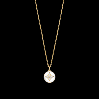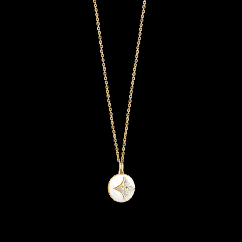 這款B Blossom項鏈創作靈感源自Georges-Louis Vuitton設計的經典Monogram花卉圖案,綴有拋光白瑪瑙吊墜,鑲嵌閃亮鑽石,繫掛於18K黃金鏈帶上。設計鮮明出眾,洋溢柔美氣息,可獨立佩戴展現奪目迷人風格,更可與其他珠寶首飾完美疊戴,締造現代魅力。