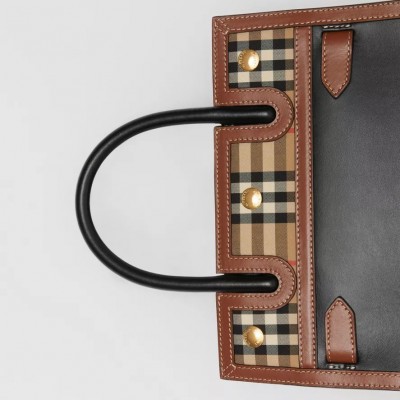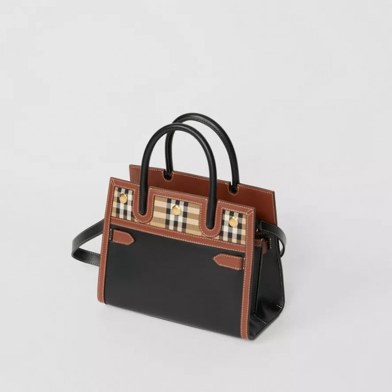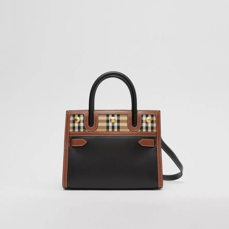 Title - 迷你皮革拼 Vintage 格紋雙提柄泰爾勒手袋