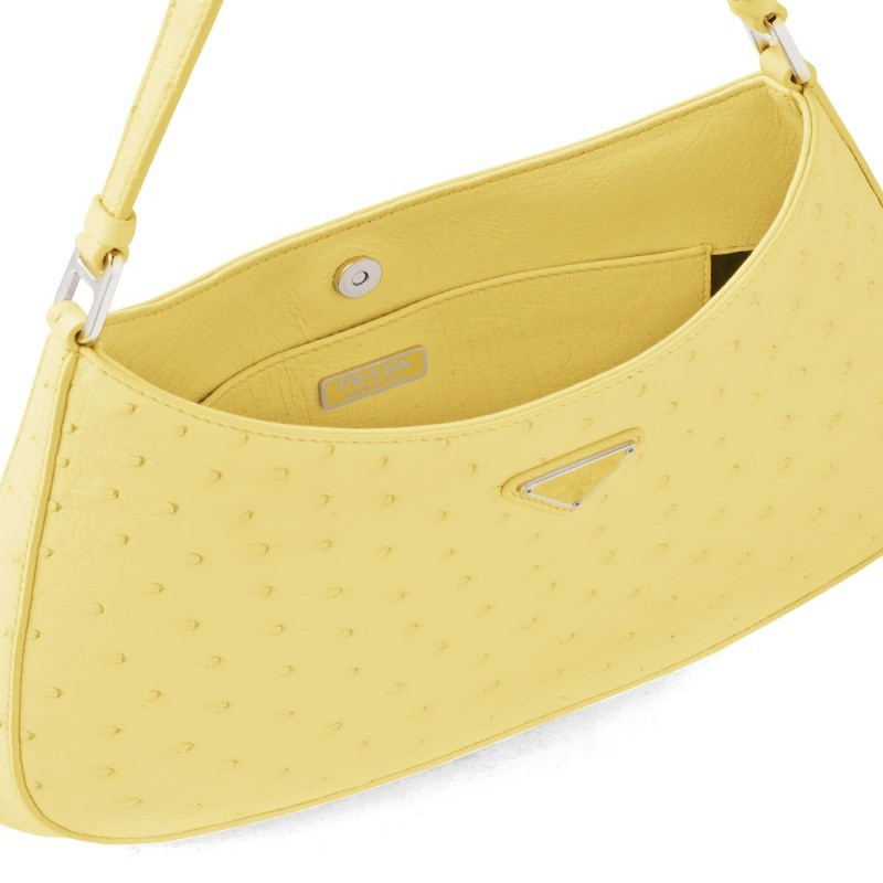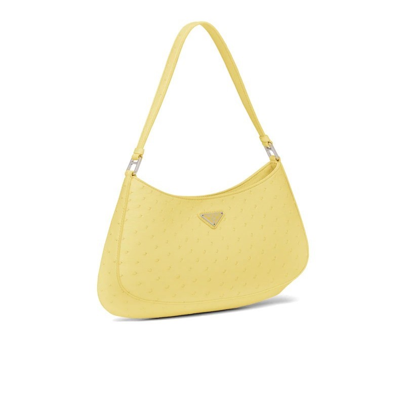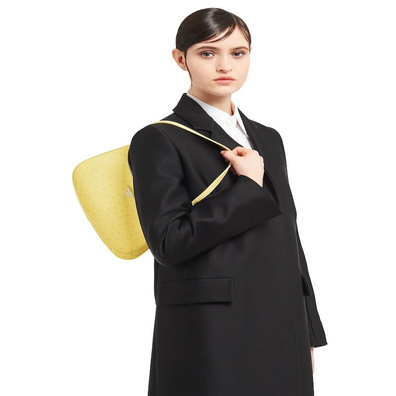 這款華美的Prada Cleo鴕鳥皮單肩包重釋標誌性的傳統設計,喚醒精緻迷人魅力。底部和側面特別的傾斜式結構賦予此款Hobo手袋柔和輕盈的外觀,彰顯簡約的弧形線條。三角形琺瑯徽標平添精美格調。