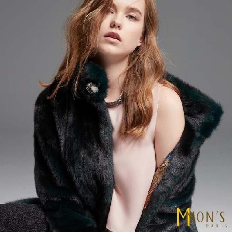 MONS奢華鑲鑽水貂毛皮草大衣(水貂毛100%)