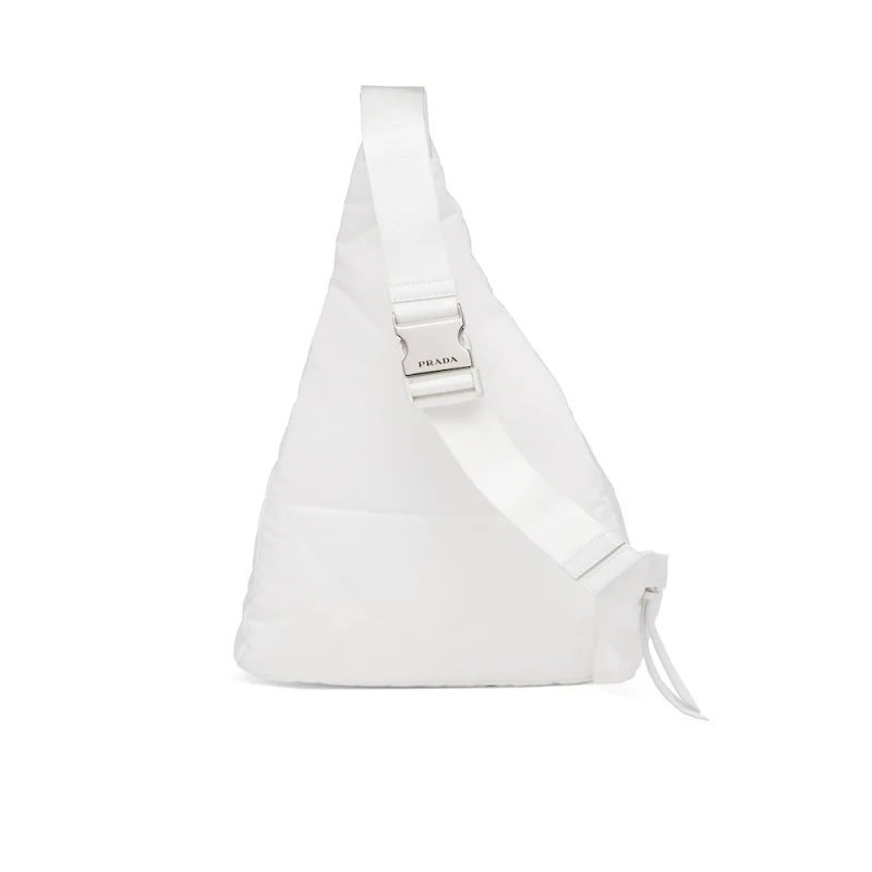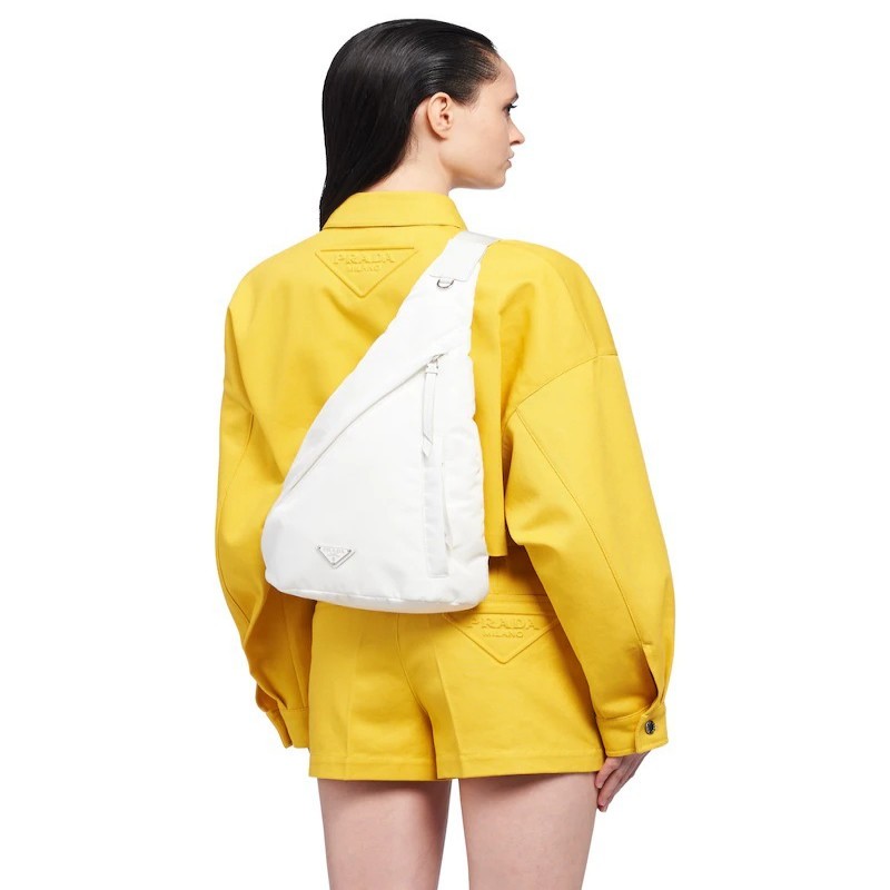 2021秋冬男士新款手袋主張時尚簡約的線條感。包身風格介於背包和單肩包之間,演繹混搭設計風格。配旁開扣的可調式編織尼龍肩帶彰顯功能性,標誌性的塗琺瑯金屬三角形徽標彰顯品牌格調。背包選材創新性的Re-Nylon再生尼龍。此面料由海洋塑料回收物製成。