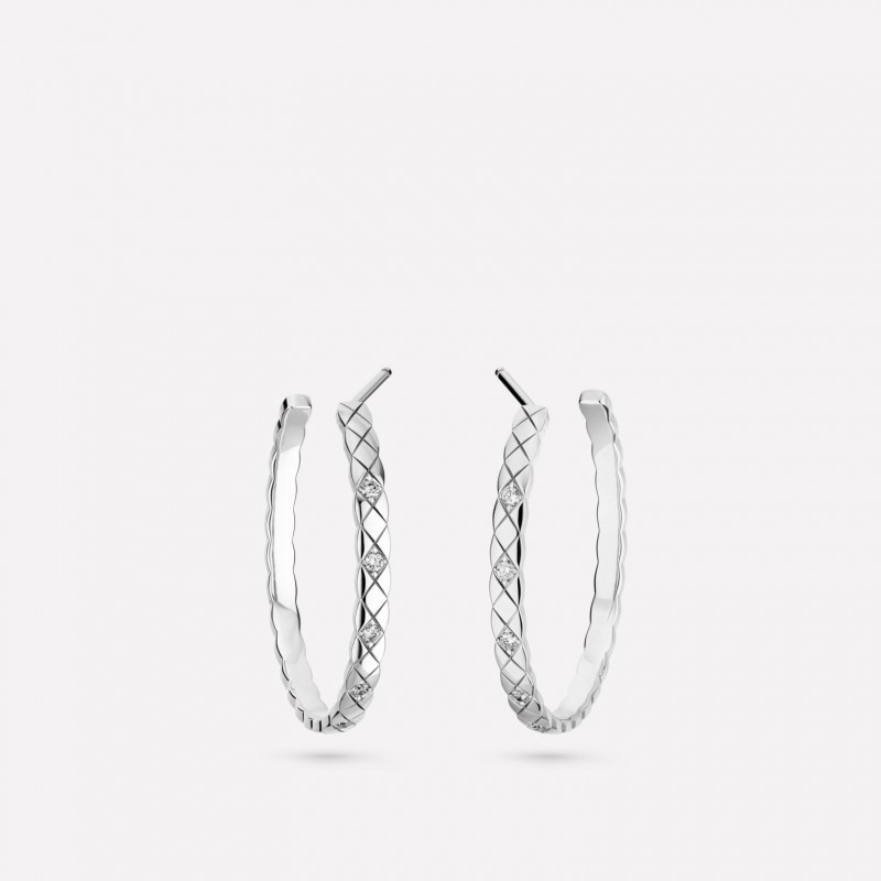 菱格紋圖案,白18K金,鑲嵌鑽石