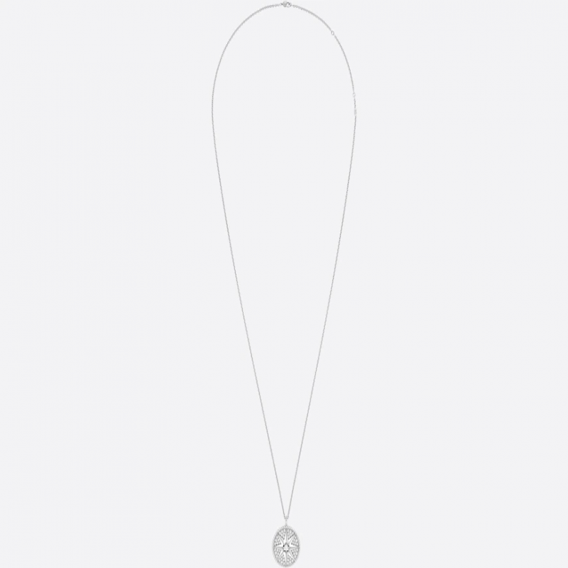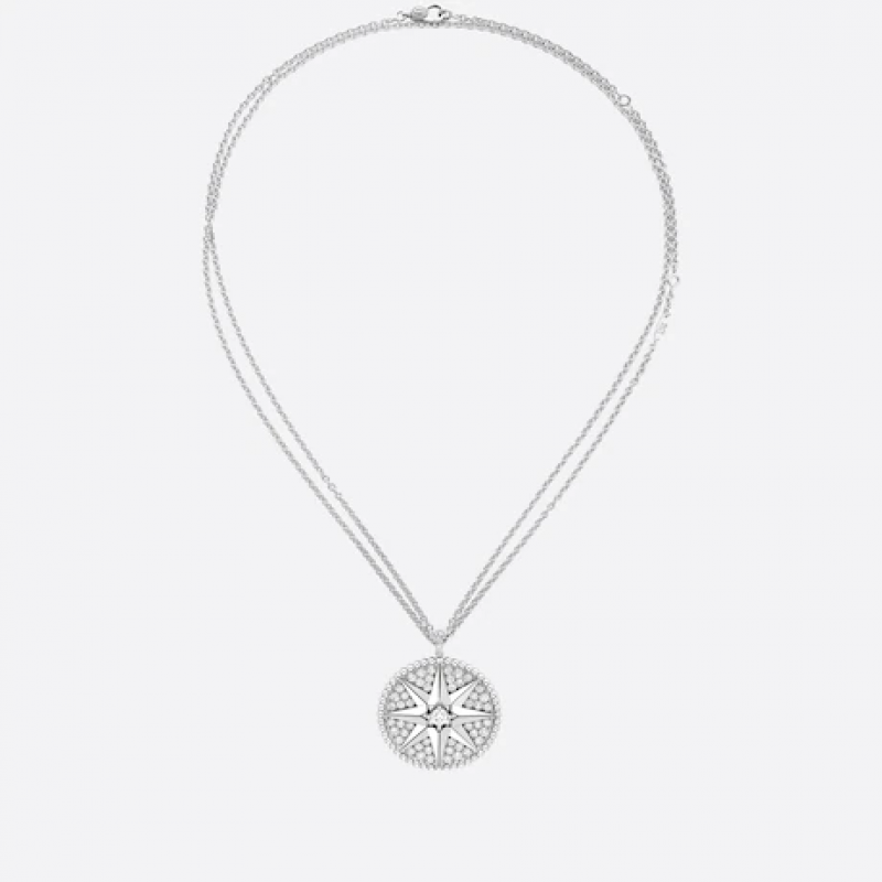 18K 白金鑽石(2.18 克拉*)長度為 85 厘米/33.5 吋,配有小環,鏈帶可調節至 80 厘米/31.5 吋或 75 厘米/29.5 吋主題圖案直徑:30 毫米/1 吋飾牌可配搭長鏈帶或短雙鏈帶