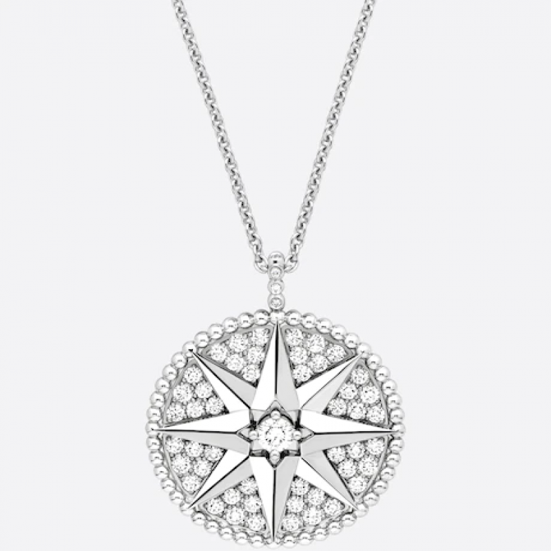 Victoire de Castellane 重新演繹 Dior 先生的幸運星設計,創作出八芒星羅盤玫瑰造型。鏈帶上以稻穗環繞的飾牌隨著佩戴者的動作翻轉。
