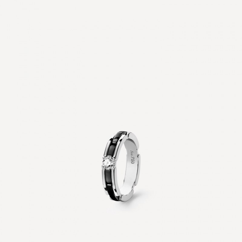 精緻款,白18K金,鑲嵌中央主鑽,黑色陶瓷