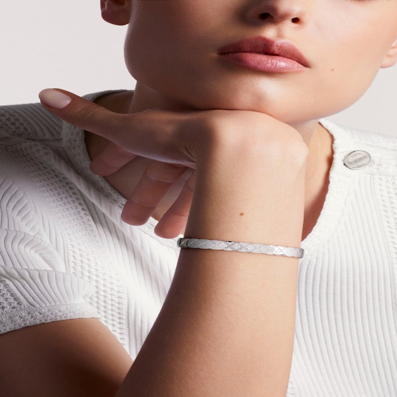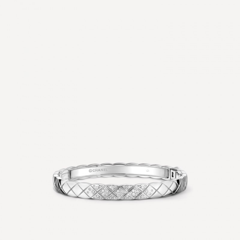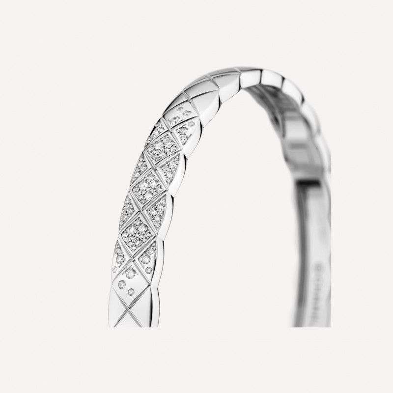 菱格紋圖案,白18K金,鑲嵌鑽石