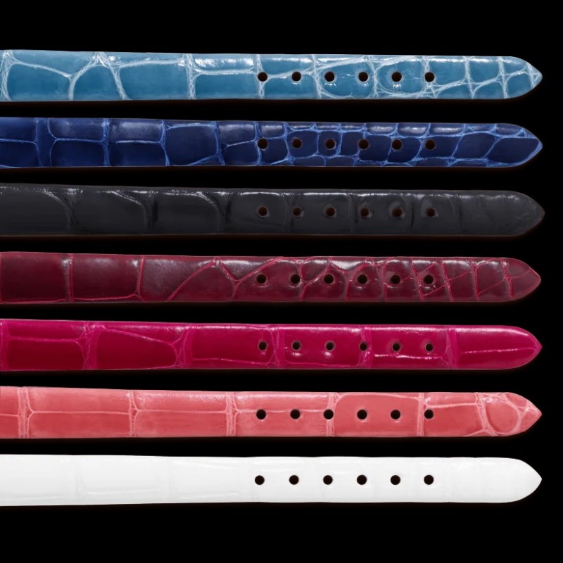 錶鍊材質:亮面方格紋鱗紋鱷魚皮(黑色) 可自行替換表扣類型: 針式表扣