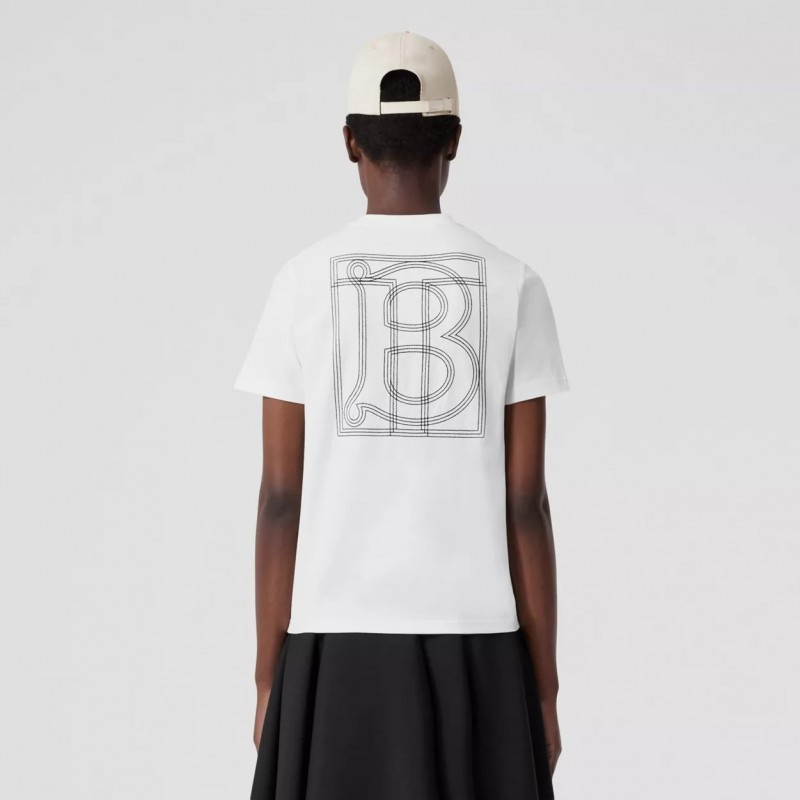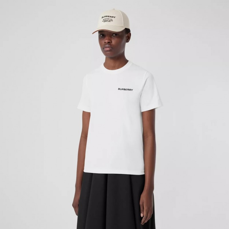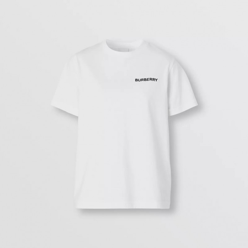 棉質T 恤衫,飾有品牌徽標和緝明線風格Thomas Burberry 專屬標識設計。