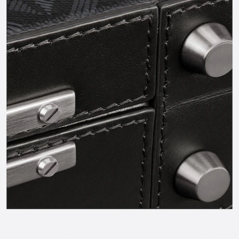 這款 Dior Lock 公文包是本季的全新配飾,以雋永的優雅風格展現自信氣質。這款作品設計挺身,以黑色 CD Diamond 帆布製作,靈感源自品牌典藏,綴以光滑小牛皮細節。內部綴以光滑小牛皮,設有口袋可收納所有必需品,並配以一條方便放置手提電腦的橡筋帶。公文包配備頂部皮革手柄可供手提。