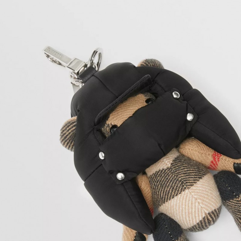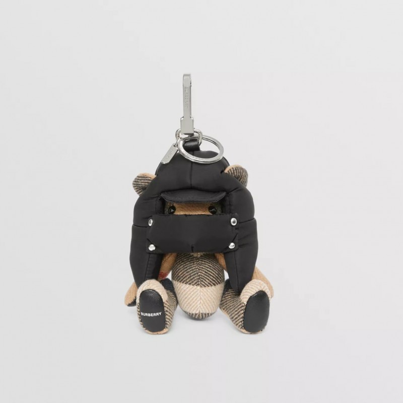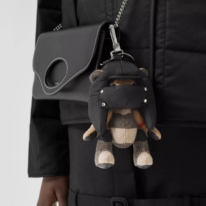 深受摯愛的Thomas 泰迪熊吊飾,以Vintage 格紋羊絨面料打造。泰迪熊佩戴誇張的加墊帽飾,腿部及手臂可活動。造型靈感源自Burberry 2022 春夏男裝系列展示。