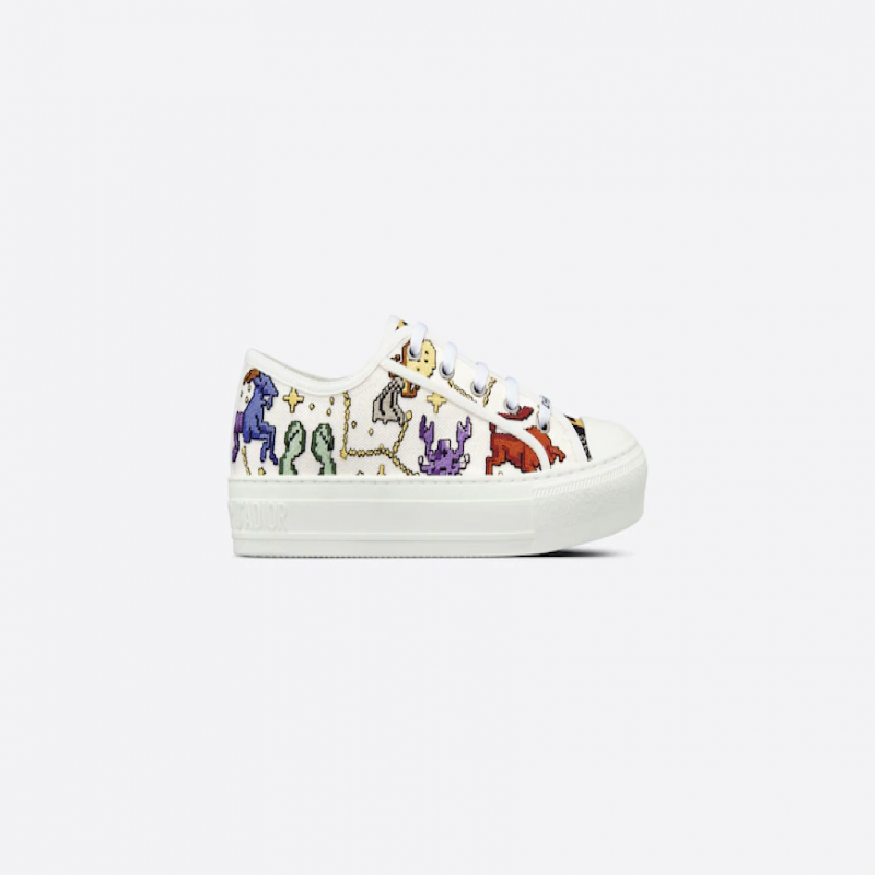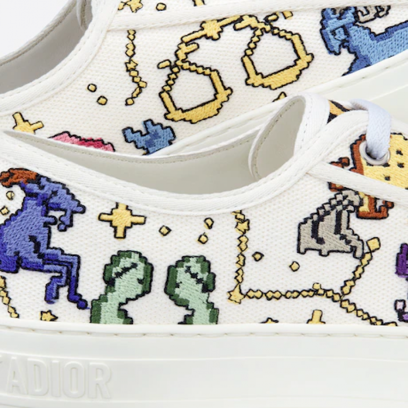 #新品 WALK'N'DIOR 運動鞋 白色多色刺繡棉綴以 Dior Pixel Zodiac 主題圖案 編號: KCK211ZPE_S43L