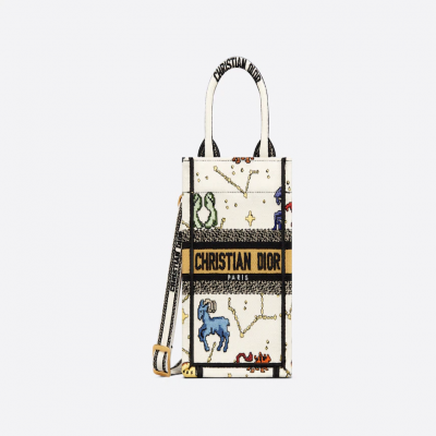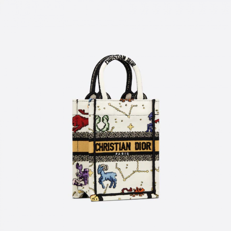 迷你 DIOR BOOK TOTE 手機袋 奶白色多色 Dior Pixel Zodiac 刺繡(13 x 18 x 5 厘米) 編號: S5555CRTY_M941
