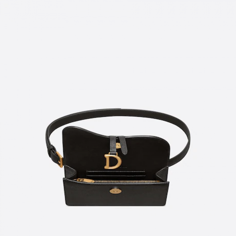 Saddle 腰包是經典小包的現代替代品。它採用黑色粒面小牛皮製成,通過翻蓋和金屬“D”馬鐙磁扣向 Saddle 系列致敬。它的可拆卸細腰帶將為任何裝扮增添一抹亮色。腰包可以肩背、斜挎或手提。