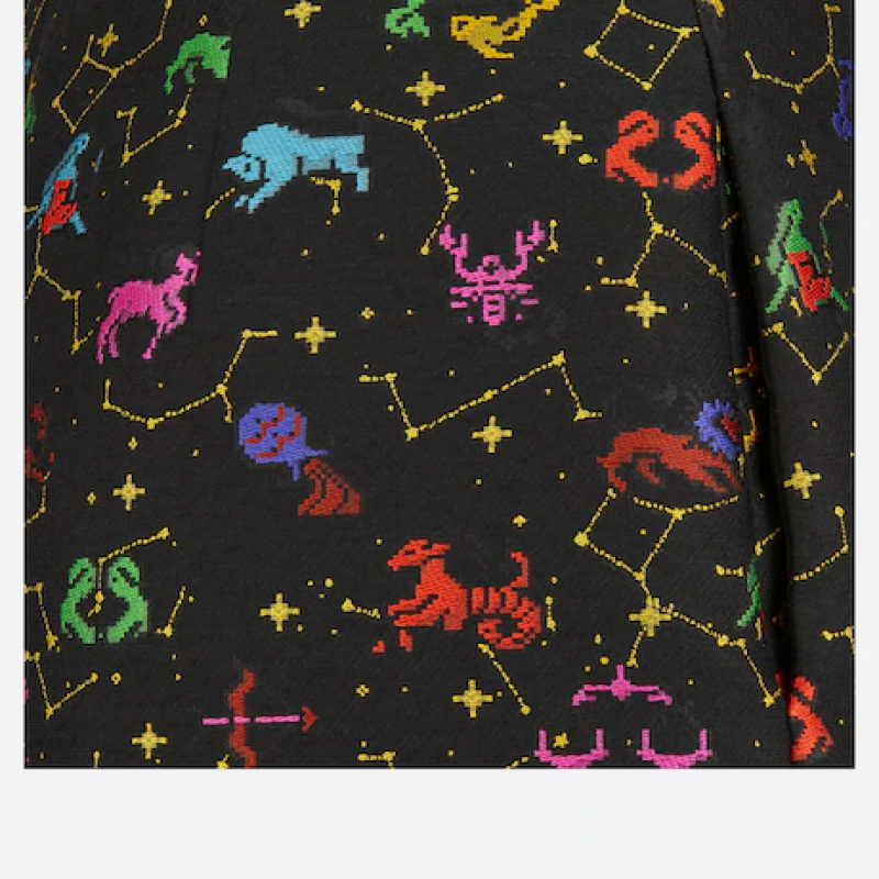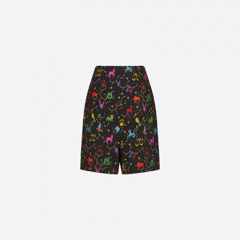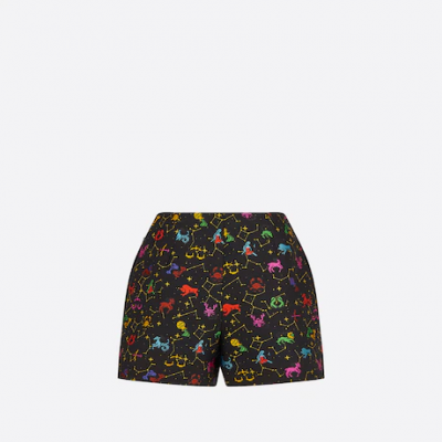 這款短褲綴以 Dior Pixel Zodiac 主題圖案,透過奇幻而繽紛的設計,為星座帶來全新演繹。以黑色科技羊毛及絲綢提花製成,外形簡約俐落。這款短褲可配搭其他 Dior Pixel 作品,令造型更為完美。