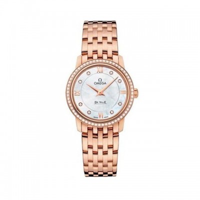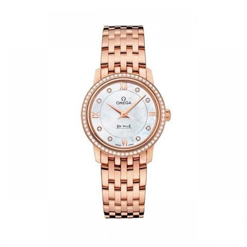 歐米茄碟飛典雅系列以其經典優雅的設計,一直深受愛戴者的鍾愛。此系列表款風格簡約、修飾華麗,洋溢著雋永氣息。此表款的白色珍珠貝殼深淺同色表面,飾有鑽石刻度,而3、6、9及12小時位置則是金質羅馬數字刻度,覆蓋防磨損藍寶石水晶鏡面。27.4毫米18K紅金表殼配置鑲鑽表圈,襯以18K紅金表鏈帶。這款腕表內置精準的歐米茄1376石英機芯。