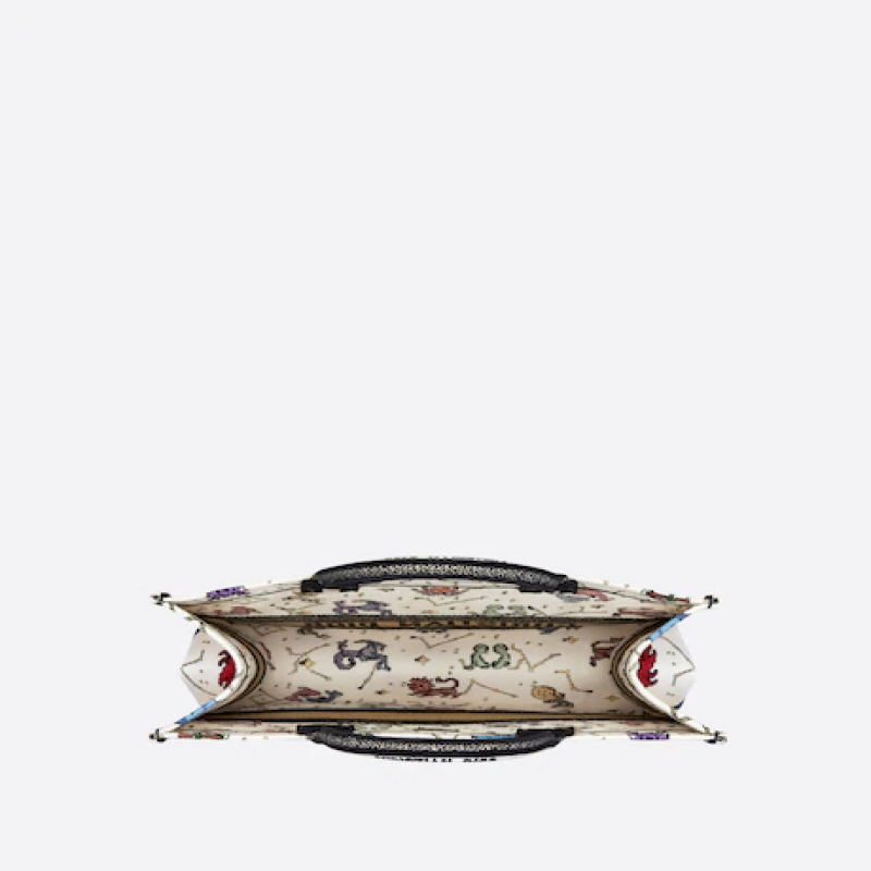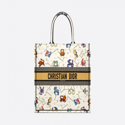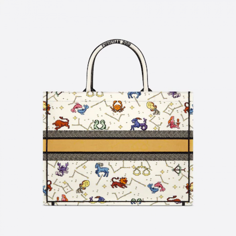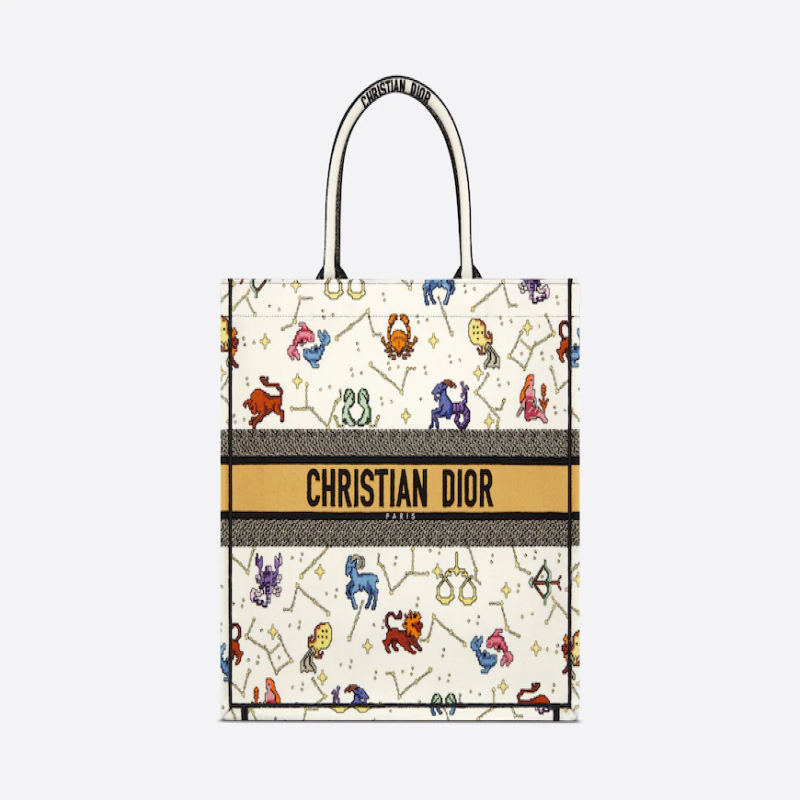 Dior Book Tote 是 Dior 創意總監 Maria Grazia Chiuri 設計的原創款式,現已成為 Dior 美學的典範。此款式可容納所有日常必需品,綴以全幅奶白色多色 Dior Pixel Zodiac 主題圖案刺繡,以奇幻繽紛的方式為星座符號帶來全新演繹。這個大碼手挽袋的正面綴以「CHRISTIAN DIOR PARIS」標誌,彰顯品牌標誌性的精湛工藝,可手提或肩背攜帶。