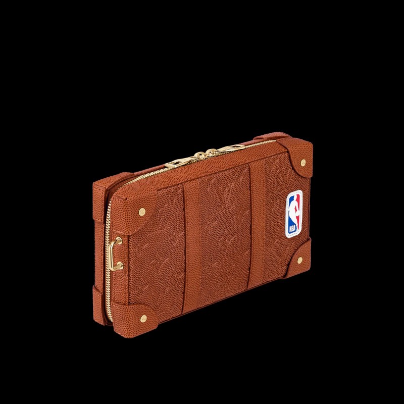 Soft Trunk Wearable 手袋出自LVxNBA SEASON 2 系列,其籃球粒面皮革浮現Monogram 壓紋,方正構型的加固邊角源自品牌傳統硬箱。系上肩帶,錢夾即刻轉化為靈巧斜挎包。
