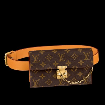 S Lock 腰包為Monogram 帆佈點綴品牌經典S-lock 鉤扣,與男裝藝術總監Virgil Abloh 設計的新款鏈條相連。潮流外表內含拉鍊袋和卡位等功能性設計。拆卸腰帶,即刻化身手拿包。可調節腰帶長度為95 厘米。