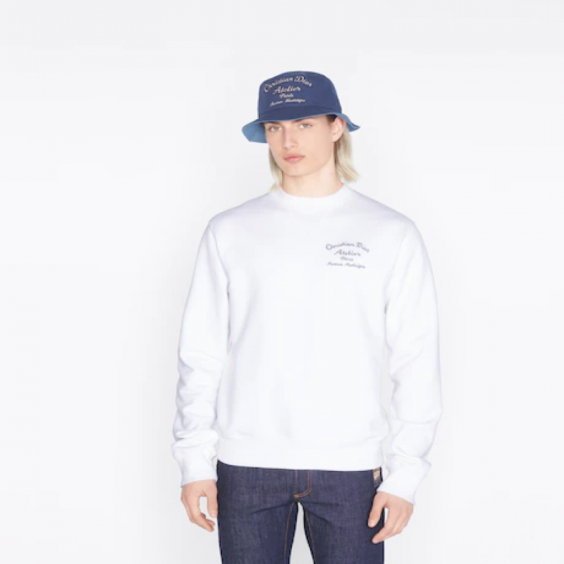 這款漁夫帽向品牌的設計師致敬。以藍色全棉帆布製作,正面綴以「Christian Dior Atelier」刺繡,配以 Dior Oblique 襯裡,帽檐下方採用對比色。此風格現代而休閒的漁夫帽可昇華任何休閒造型。