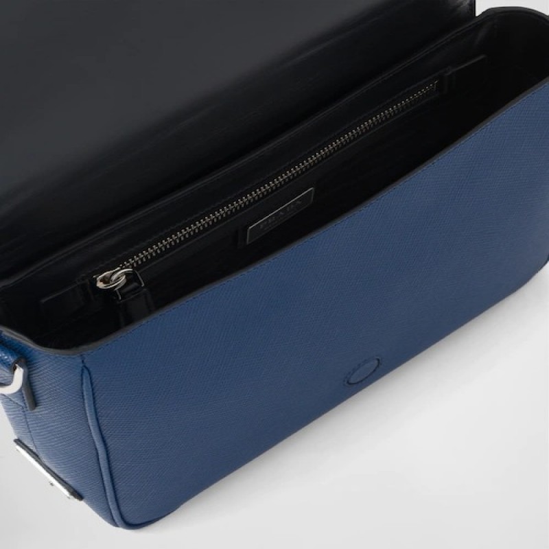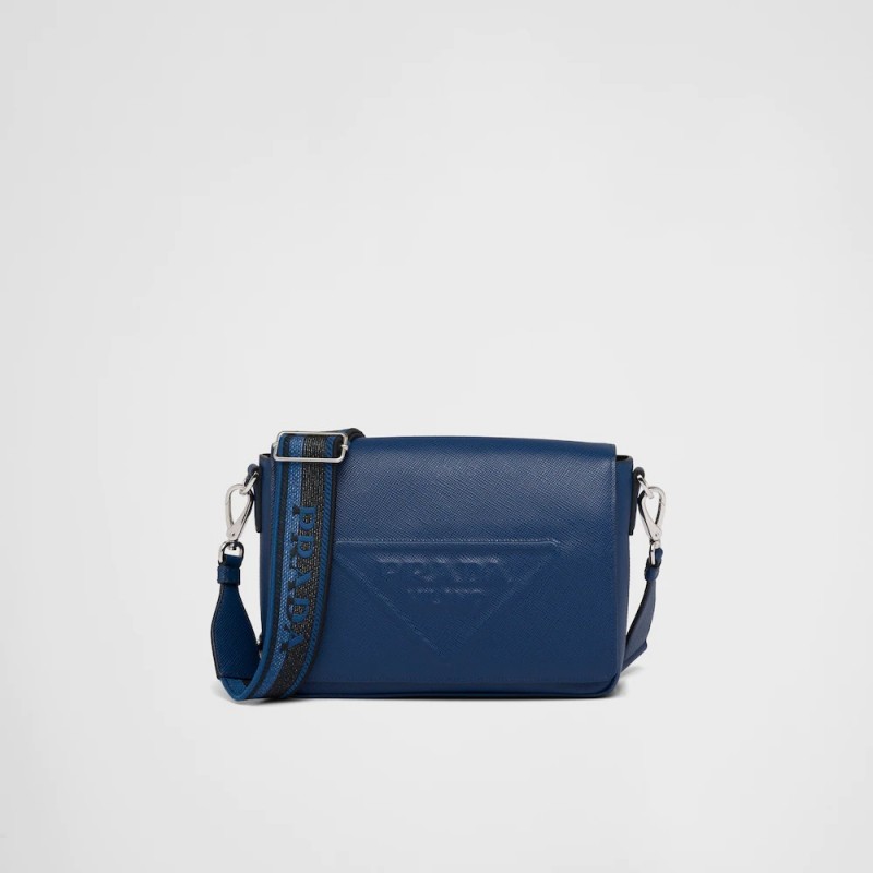 Saffiano 皮革壓花徽標單肩包