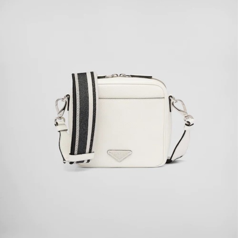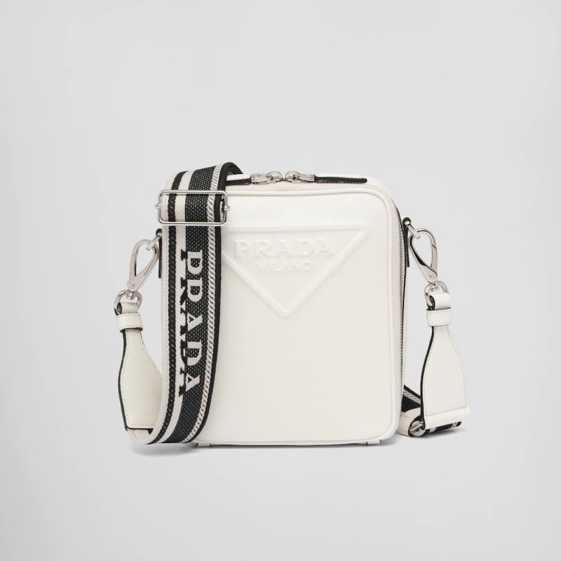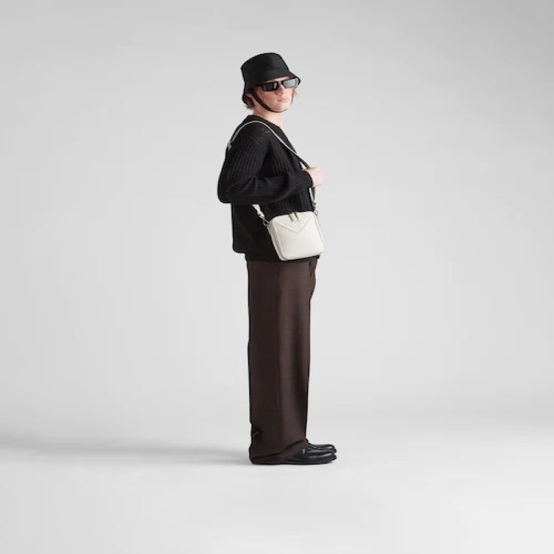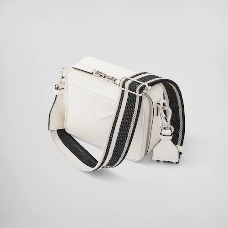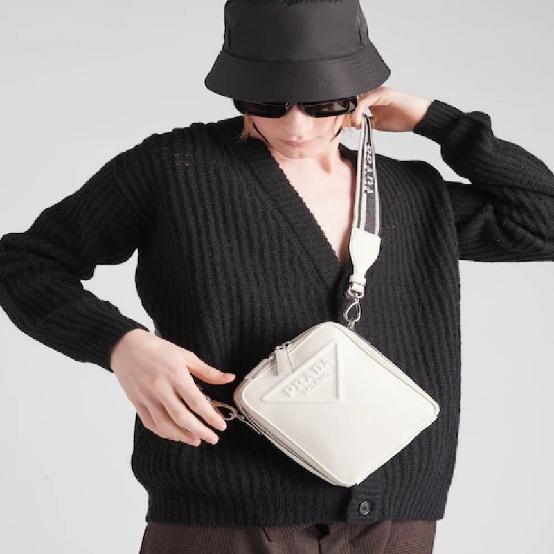 這款時尚簡約的單肩包取材品牌標誌性的Saffiano皮革,呈現別緻的交叉平行線陰影紋理和塗蠟飾面。Prada富有像徵意義的三角形徽標化身大幅壓花細節,鋪陳於正面。Re-Nylon再生尼龍襯裡宣示品牌的創新理念。