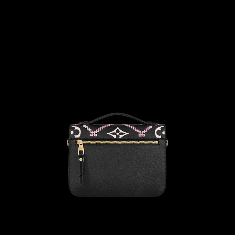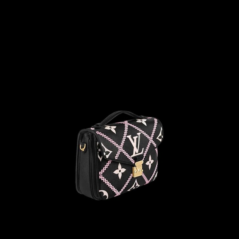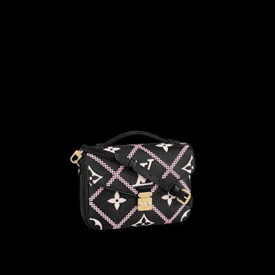 2022 春季系列Pochette Métis 手袋以Monogram Empreinte 壓紋皮革烘托光澤熠熠的刺繡,彰顯品牌精湛匠藝和傳統硬箱的絎縫內飾設計。頂部手柄和可拆卸肩帶實現多種背攜方式。