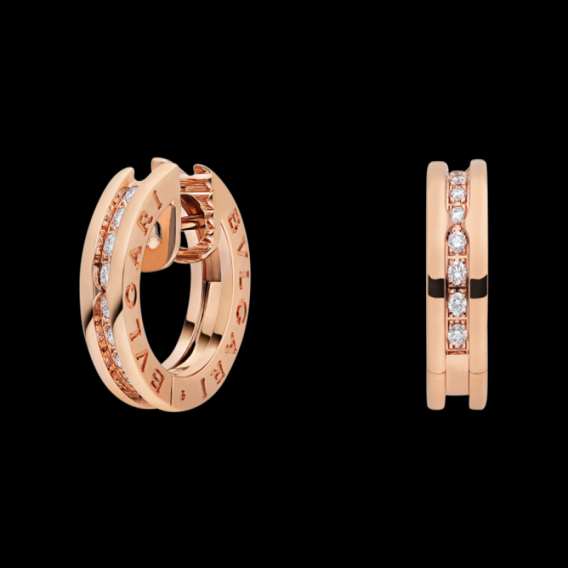 B.ZERO1耳環從舉世聞名的圓形露天劇場——羅馬鬥獸場汲取靈感,真正彰顯了BULGARI寶格麗的創意視角,向珠寶設計的精髓發起了挑戰。其獨特純粹的螺旋造型,象徵著過去、現在和未來的和諧相承——這在輝煌壯麗的永恆之城中得到體現——以及該系列的開拓精神。B.ZERO1系列圓圈耳環,小號,18K玫瑰金材質,飾以密鑲鑽石。