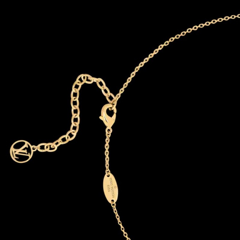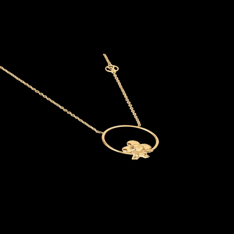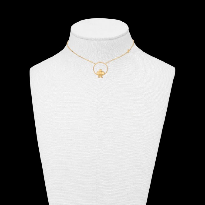Vivienne Swinging 項鍊展現品牌吉祥物Vivienne 懸掛在拋光金屬圓環之上搖晃之景,抒發冒險精神和靈動趣味。LV Circle 標識優雅點綴精緻鏈條。