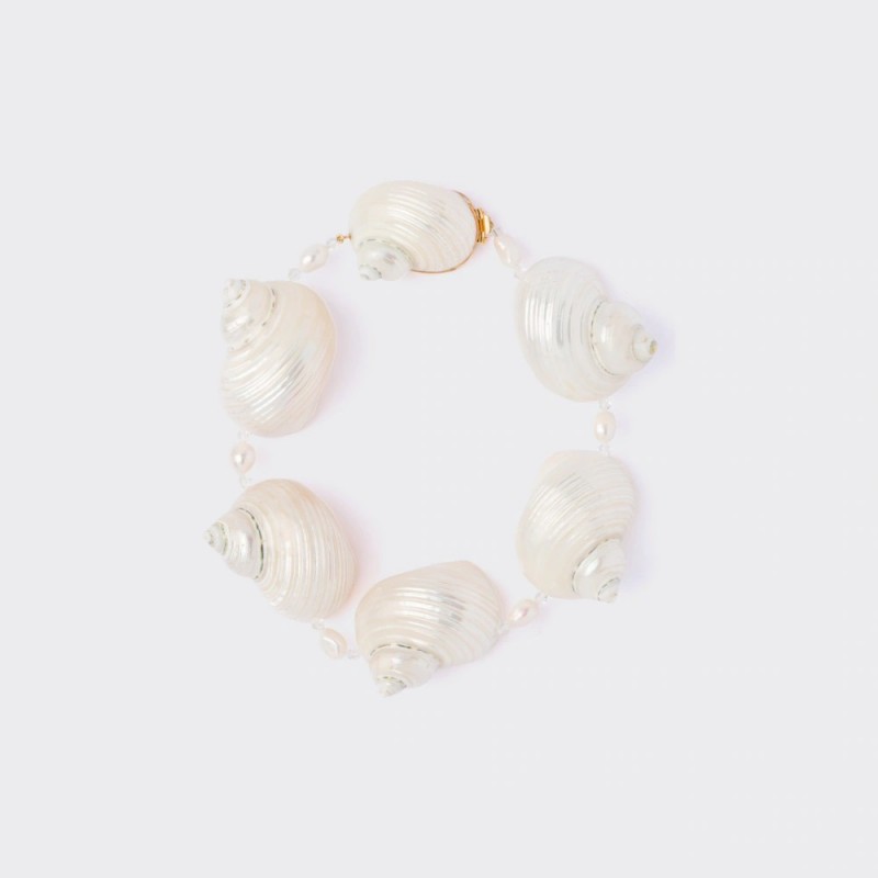 這款銀質頸鍊飾有交替點綴的大貝殼和仿珍珠。優雅格調喚起對夏日風情的聯想。
