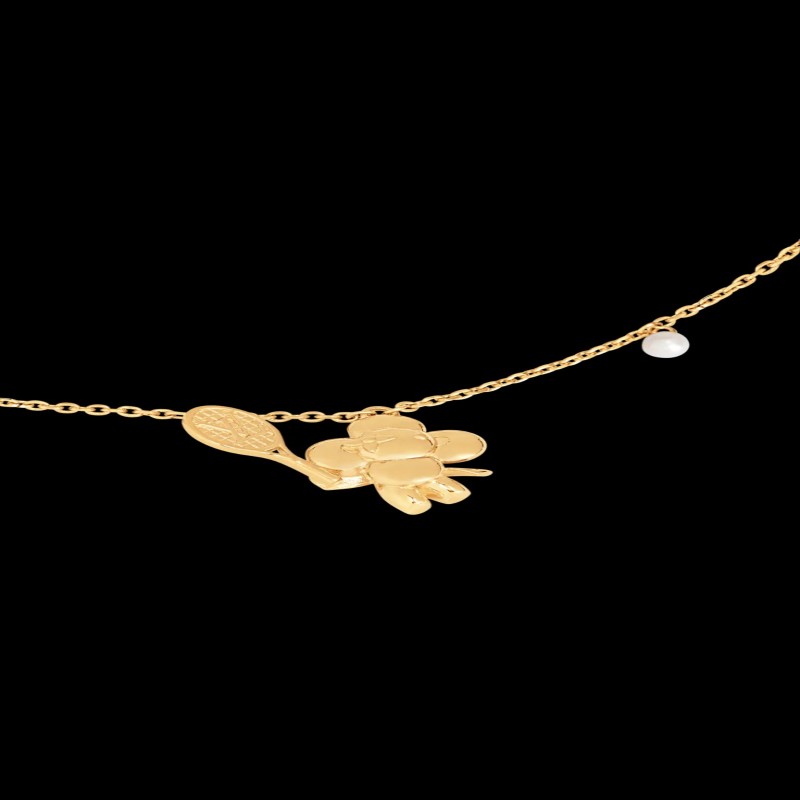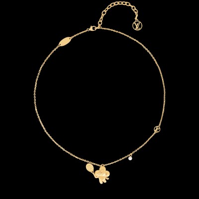 Vivienne On The Court 項鍊將玩趣意味和精湛工藝融於一處。品牌吉祥物Vivienne 手持網球拍,懸掛在纖細鏈條之上。LV 字母銘紋和LV Circle 標識裝飾再添經典底蘊。