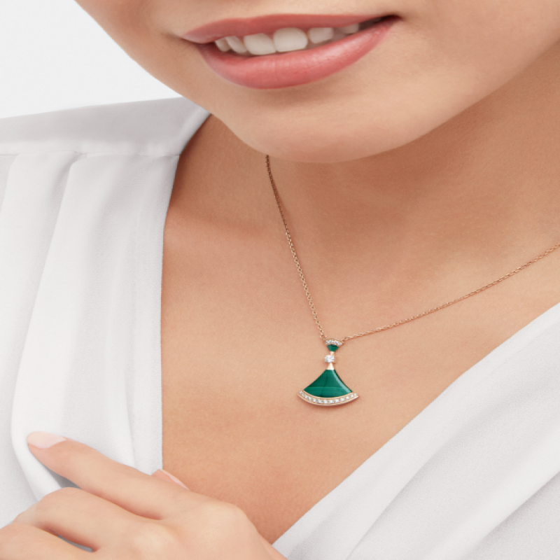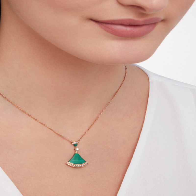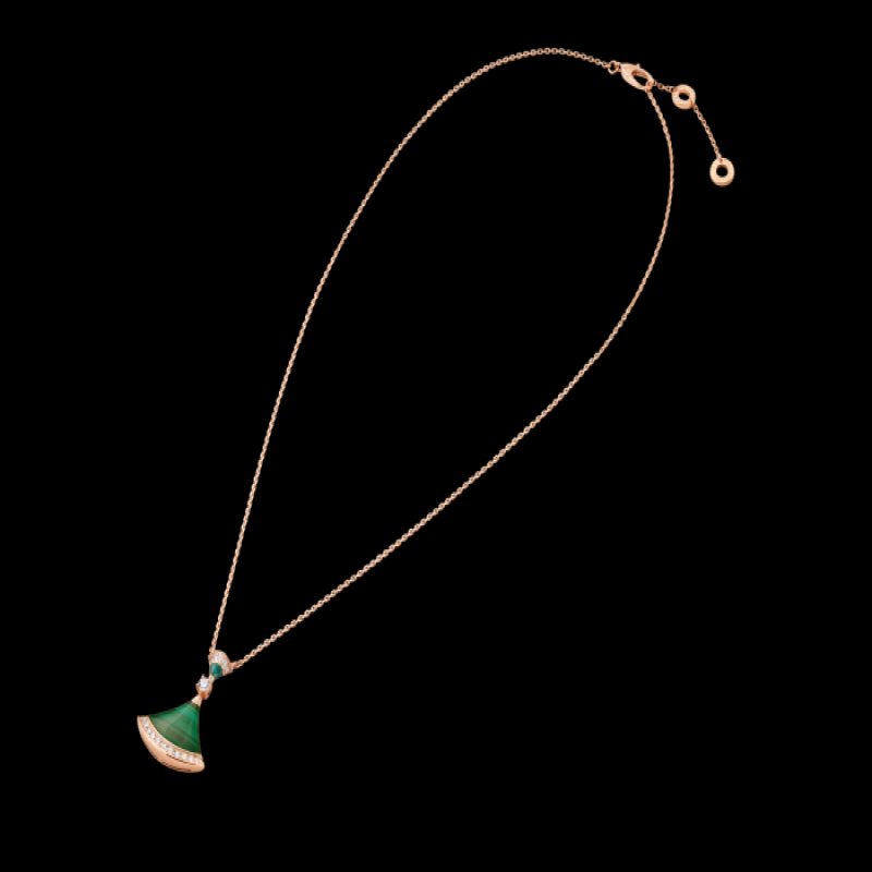 DIVAS' DREAM系列項鍊從女性的優雅氣質和永恆之城的迷人氣息中汲取靈感,以獨樹一幟的羅馬精神向迷人的女性致敬。這款項鍊頗具女性氣質、精美典雅,呈現卡拉卡拉大浴場(CARACALLA BATHS)大理石的華美和扇形馬賽克的迷人曲線,體現意大利美學的真正精髓。