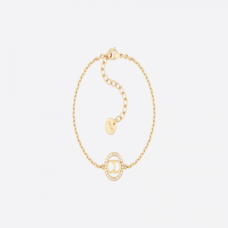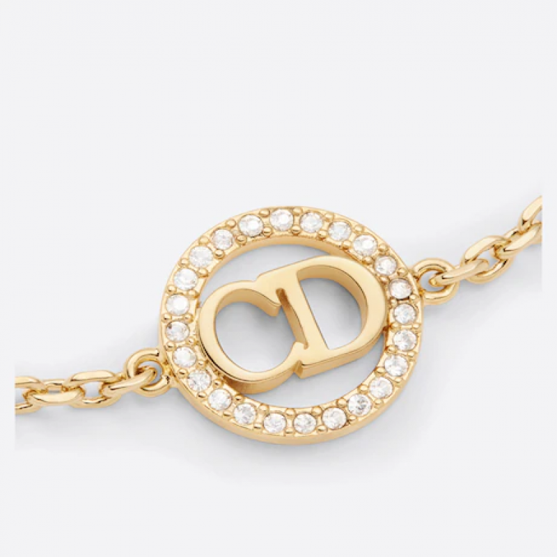 Clair D Lune 手鏈散發雋永典雅的氣息。此款式以金色飾面金屬精製而成,展現「CD」標誌,四周鑲有精緻銀色反光水晶。這款手鏈時尚而優雅,可配搭 Clair D Lune 系列的其他作品。