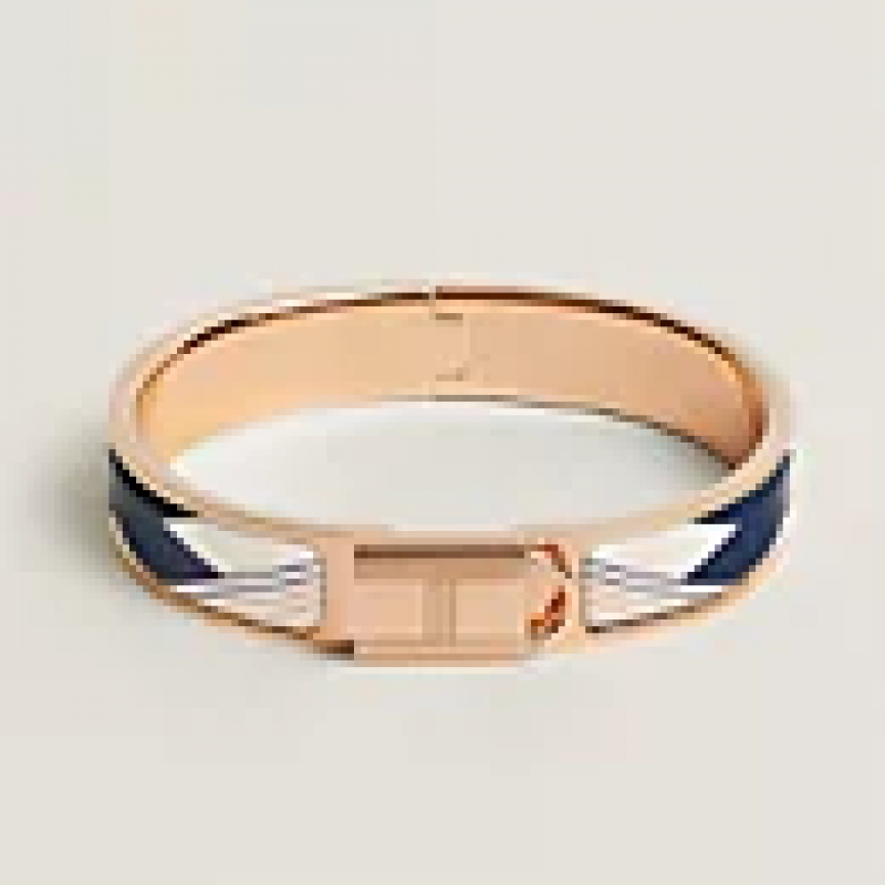 窄版"H en Biais"圖紋印花琺瑯手環,鍍玫瑰金金屬配件。