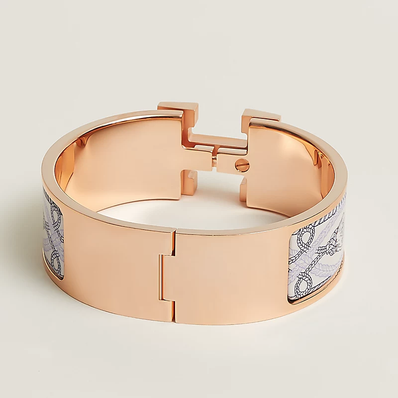 寬版"Grand Apparat"圖紋印花琺瑯手環,鍍玫瑰金金屬配件。法國製造。