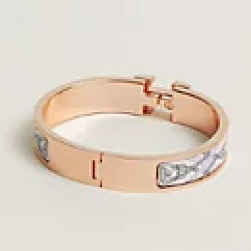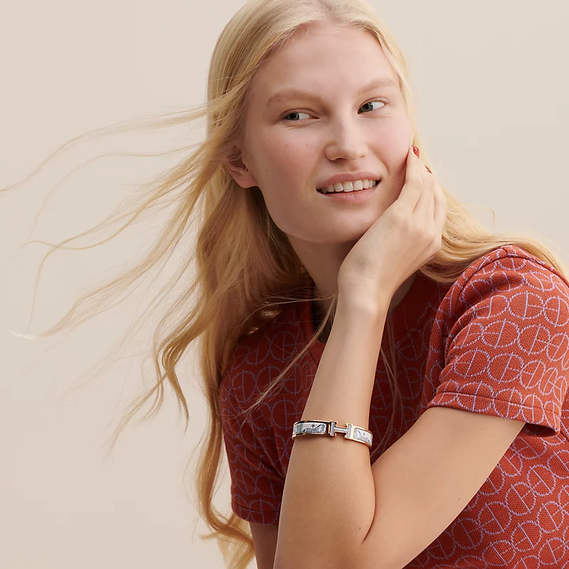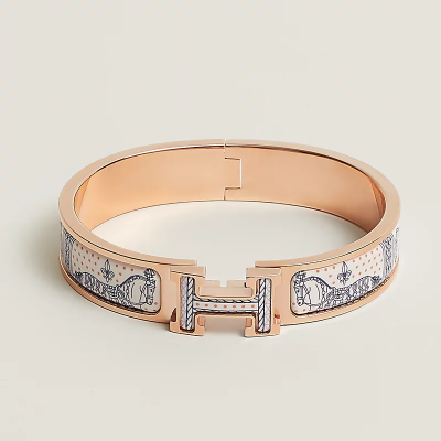 窄版"Grand Apparat"圖紋印花琺瑯手環,鍍玫瑰金金屬配件。法國製造。