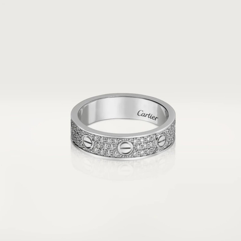 《男女同款》LOVE結婚戒指,一對售賣 ,白金 750/1000,鑲嵌 88 顆總重 0.31 克拉的明亮式切割鑽石(52 號)。4 毫米至 5 毫米寬度以下尺寸。