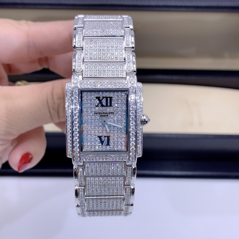 現貨百達翡麗4910型號30*25mm表徑滿天星石英女式腕錶PP鑽石女錶整表錶盤、表把都是鑽石,實物更是奢閃耀,女神最最經典單品 庫存:4