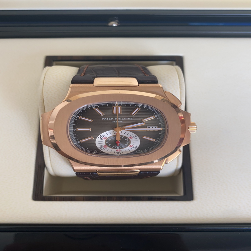 百達翡麗鸚鵡螺運動優雅系列5980R-001,40.5盤自動機械男錶,黑褐色盤面,18K玫瑰金錶殼,11年全套閒置品,原始品相,理財保值首選,市場售價571700!沒人能夠真擁有百達翡麗,只不過下一代保管而已,尋找屬於它的意中人!#Patek Philippe/百達翡麗 庫存:6