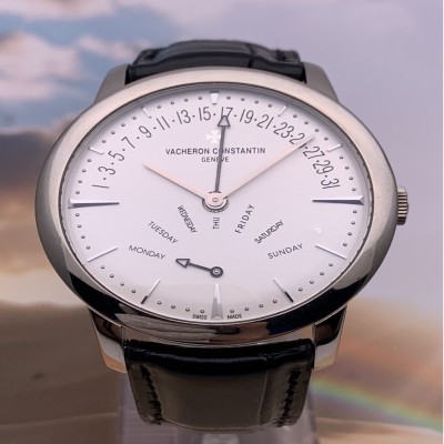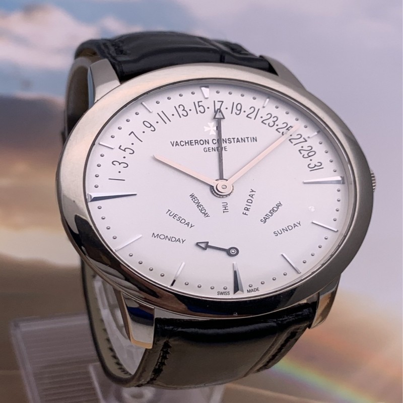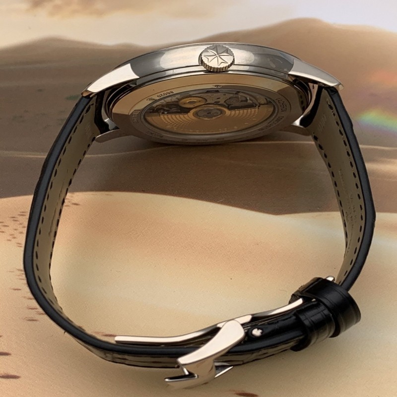 腕錶點評:詩丹頓傳承86020/000G-9508外觀上給人低調、內斂的感覺,採用了奢華的18K白金來打造錶殼,渲染低調的奢華質感。42.5mm白色圓形錶盤給人以大氣感,黑色字體與白色錶盤是絕妙搭配,不僅讀取清晰,也符合低調質感的訴求。搭配鱷魚皮白K金針扣錶帶,華貴的感覺不言而喻,十分適合低調沉穩的商務人士佩戴