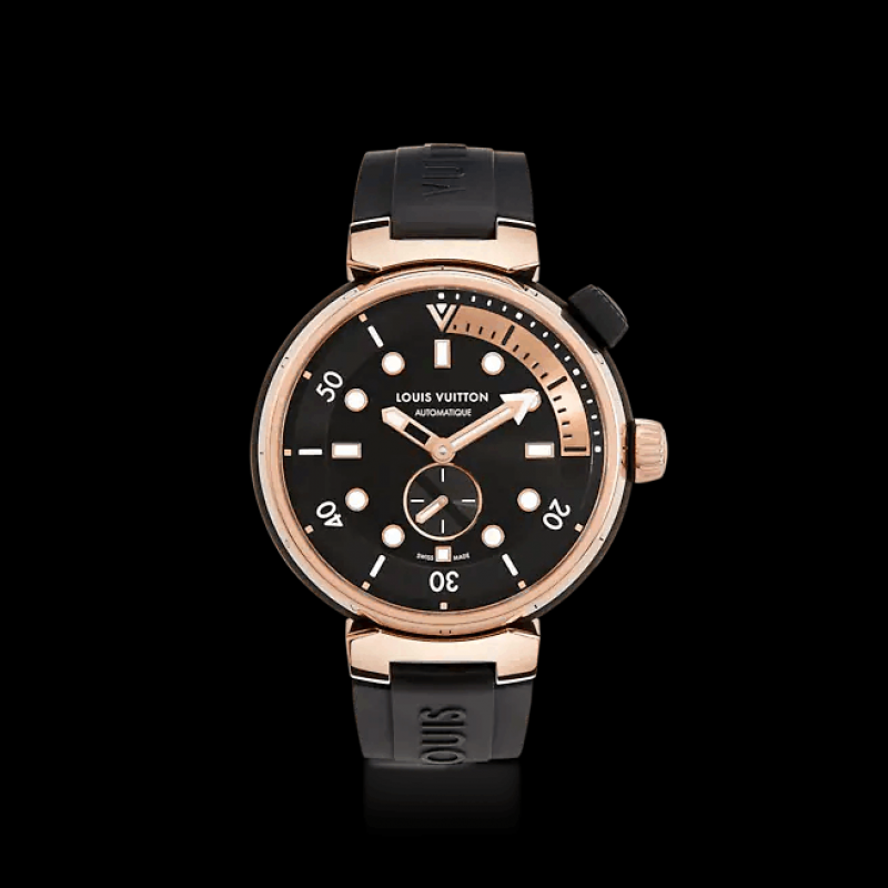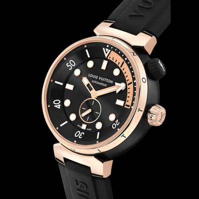 這款Black Blaze型號為Tambour Street Diver系列帶來精緻格調,拋光玫瑰金的材質與運動風格形成強烈對比,締造獨特鮮明的現代造型。腕錶以全新的多功能設計演繹經典Tambour款式,將傳統潛水功能和出奇創新設計融為一體。