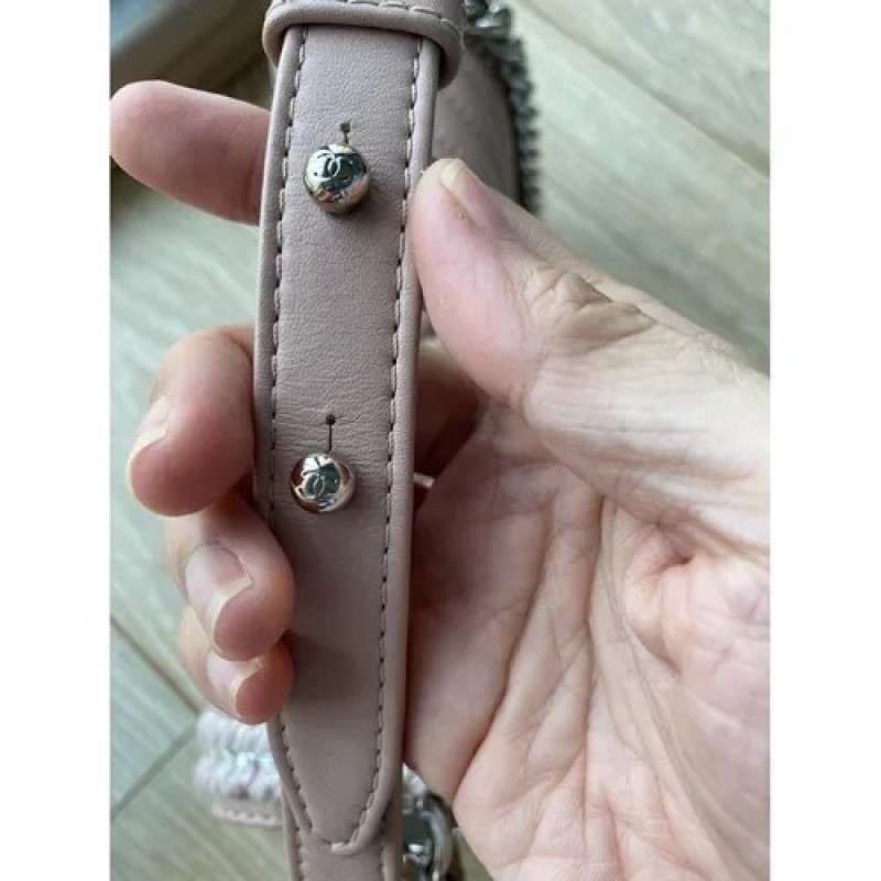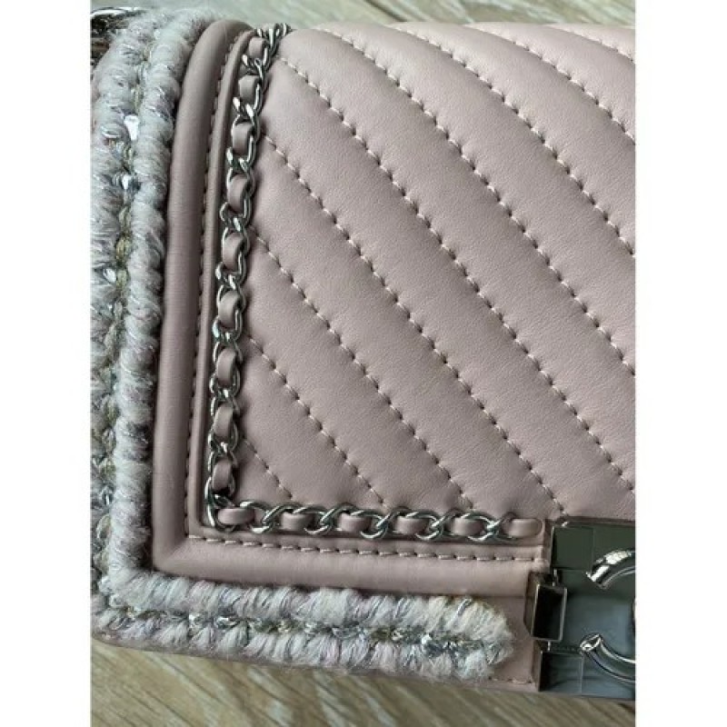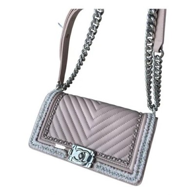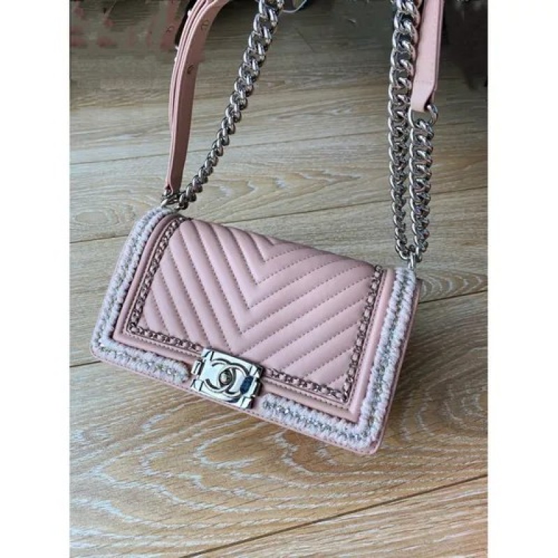 Chanel Boy Chevron Braid Around 鏈條翻蓋包來自 2017 秋冬系列。這是一個可愛的裸粉色。出現在 Bragmybag 上。中號 - 5.7 X 9.8 X 3.1 英寸 包包處於原始狀態 輕微的凹陷痕跡