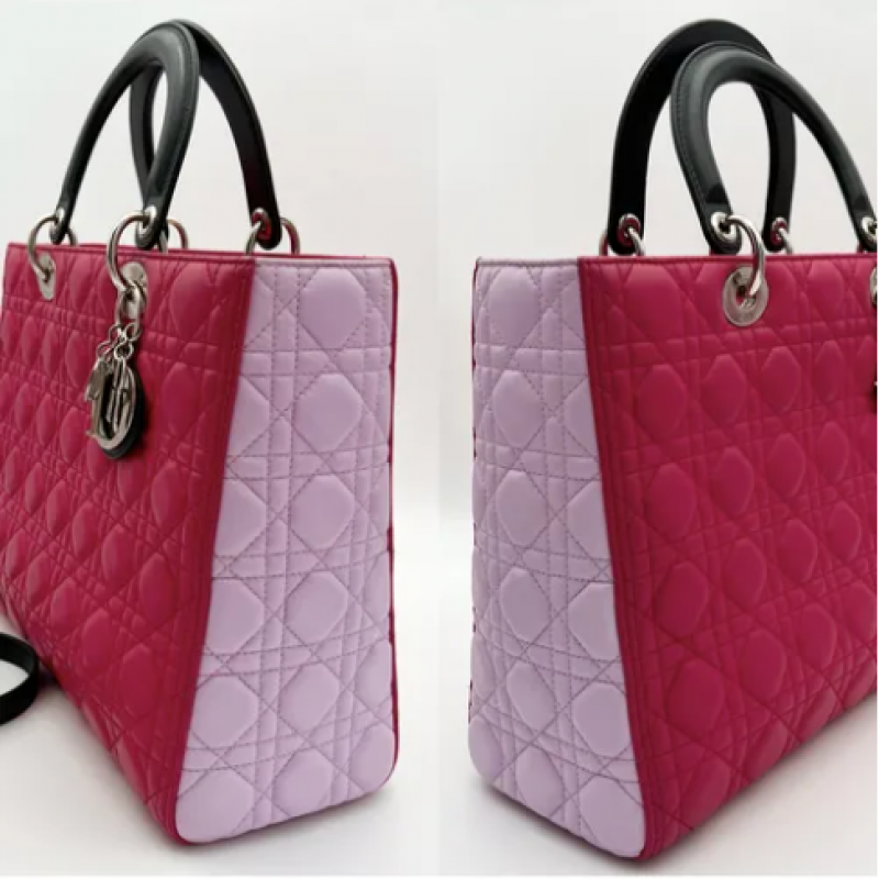 非常罕見的三色lady dior大號黑色手柄,黑色可拆卸錶帶非常好打理只穿1-2次附贈防塵袋,認證卡2014年購買。